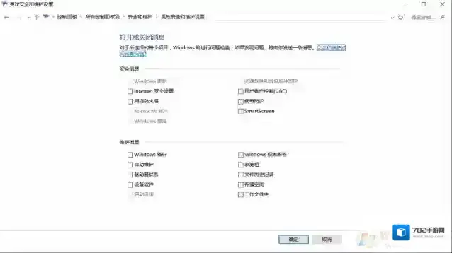 点击更改安全和维护设置、更改windows smartscreen筛选器设置去掉所有的消息通知