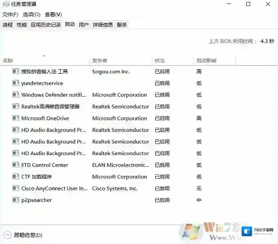 5.调整系统启动项,任务管理器-启动,适当关闭