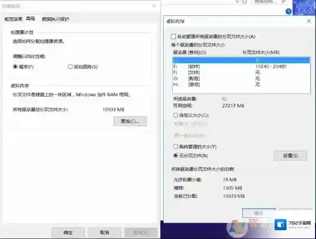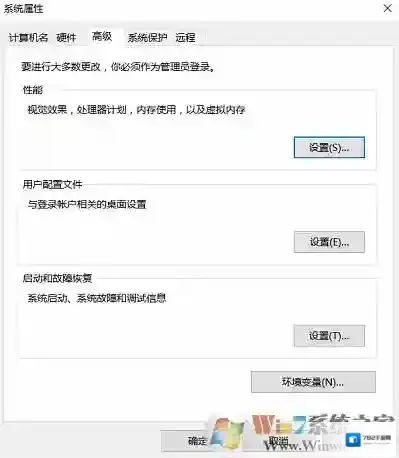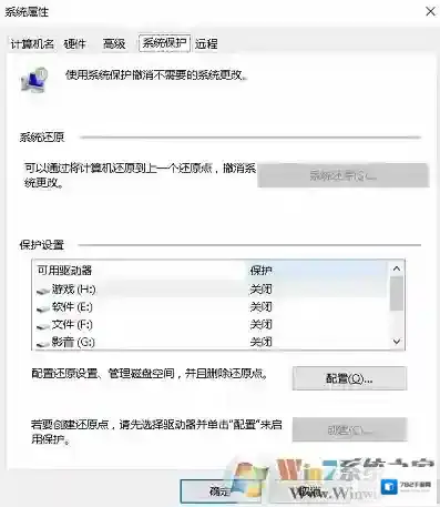 虚拟内存-更改(不要设置在系统盘,选中系统盘,然后选中无分页文件-设置,更改为其他盘,然后点击自定义大小,最小值为内存的1-1.5倍,最大为 内存的2-2.5倍,然后点击设置,点击确定) 10、关闭系统保护(如果需要备份可以不关闭)