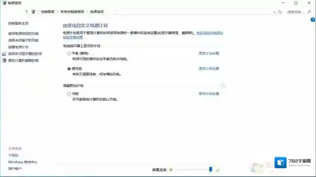 6、电源设置,右键电源图标,选择电源选项,打开后设置为高性能