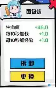 蓝色面包妹*5:生命值45.0,每10秒加钱+1.0,每10秒加经验+1.0