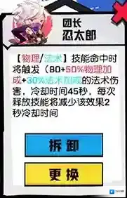 忍太郎:物理/法术技能命中时将触发80+50%物理加成+30%法术加成的法术伤害,冷却时间45秒,每次释放技能将减少该效果2秒冷却时间。