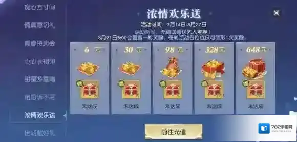 除了充值得元宝、领壕礼,即日起到3月27日期间,天命者们的每1元宝充值都将累积1点财运,在“佳期献好礼”活动中利用财运可以兑换到护心镜宝匣、天宫诏书、璀钻、七星鼎等珍稀奖励!“浓情欢乐送”活动里,每个档位的充值还会赠送大量艺人宝匣!