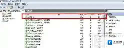 10、然后点击入站规则就可以显示之前设置的规则了,说明135,137,138,139,445等端口关闭已经生效了。