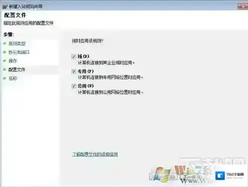 9、“域”“专用”“公用”都选上,点击下一步,输入“名称”和“描述”即可,这里你可根据自己需要内容自行决定,点击完成,这个组织规则就创建完成了。