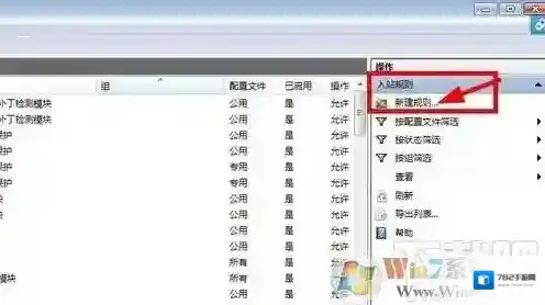 5、点击对话框左侧的“入站规则”,然后点击右侧的“新建规则”;