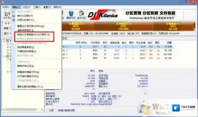 备份完分区表后,我们就利用DiskGenius将操作系统磁盘从MBR模式转换为GPT(GUID)模式。