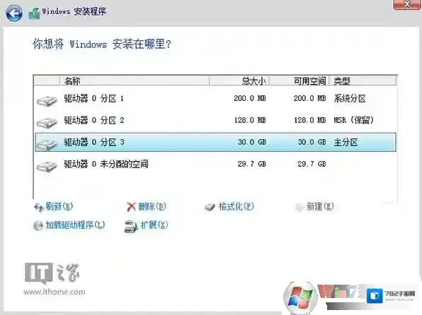 ▲图6:分区过程采用虚拟机模拟,因此主分区大小设定30GB仅作为操作演示,实际操作按照第10步执行