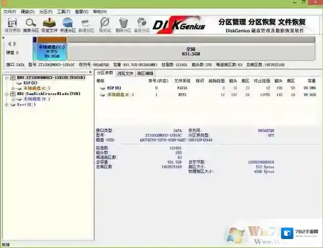接下来先保存刚才的操作,重新启动PE,然后再次运行DiskGenius,对新建的ESP分区指定盘符(如果不重新启动系统直接指定盘符,会报参数错误)。(Win7系统之家 www.winwin7.com整理)