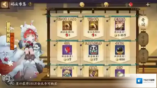※「码头集市」:大人可使用活动中收集的「金爪币」兑换SR阶式神小松丸新皮肤「绒雪缀枝」、动态头像框「金逐舸影·流阙」、活动专属插画、御行达摩、SP/SSR式神召唤券、高级结界卡等奖励。