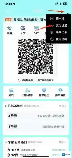 五、用户成功申领退役军人、其他优抚对象优待乘车卡(电子卡)后,点击爱南宁APP首页底部的二维码入口,进入“一码通城”页,点击页面右上角“…”后选择“支付设置”,对需要使用优待乘车卡的交通工具开通免密支付功能。