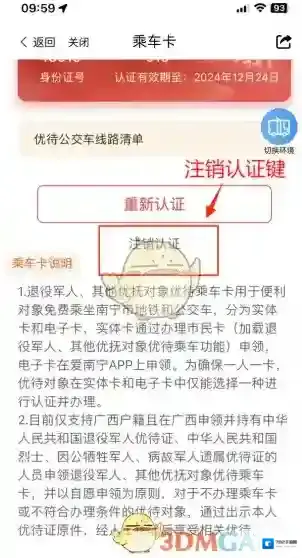 七、用户若出于其他原因需注销退役军人、其他优抚对象优待乘车卡(电子卡),可通过点击页面中部“注销认证”完成操作。注销成功后,若用户再次申领,需重新完成认证流程。