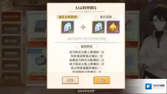 类似月卡存在的料理御侍会员礼包,非常实惠,购买后每日可以获得幻晶石(钻石)和灵火种奖励