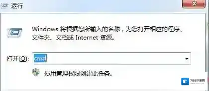 2、在弹出的运行对话框里,输入CMD命令,点击打开命令提示符;