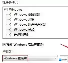 5、在程序事件中找到windows登陆,ranhou点击浏览。找到我们准备好的歌曲