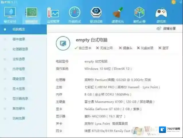 电脑显卡配置查看方法三:使用第三方软件,推荐360驱动大师、鲁大师、cpu-z等下载相应的软件,打开后就可以查查看整机的配置状态,其中就有显卡的配置: