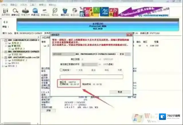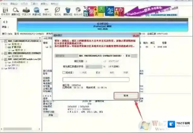 3,接着会弹出警告提示,清除扇区会破坏数据,我们这里点确定(注意要保存数据),如下图所示;