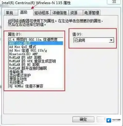 5、在弹出的界面上,选择“高级”,高级界面属性里的所有值都设置为“已启用”,设置完成后直接重新连接WIFI尝试。如图