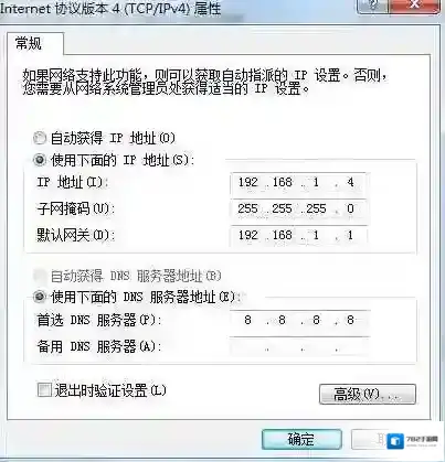 4、接下来就是重点了,根据你的需要进行设置IP地址,如果是为了上网的话 那么IP地址要和路由器同一地址段,IP地址:如你的路由器IP地址是192.168.1.1 那么本地连接的地址设置为 192.168.1.2-192.168.255之间的一个,只要最后面的不一至就可以了!子网掩码:255.255.255.0默认网关:为路由器地址192.168.1.1;DNS服务器地址:可使用当地的DNS服务器地址 也可以使用公网DNS 如114.114.114.114 8.8.8.8 首确定有用,备用不填写也可以。