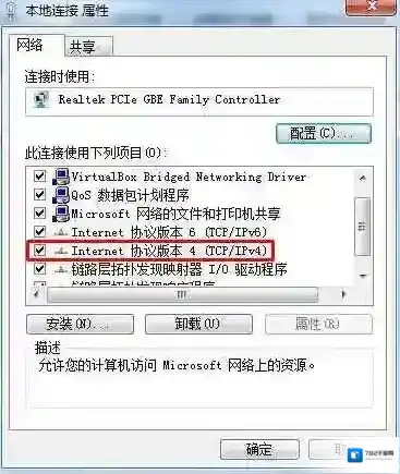3、这时我们可以打开本地连接属性界面,双击 internet 协议版本4 (TCP/IPv4)进行设置;
