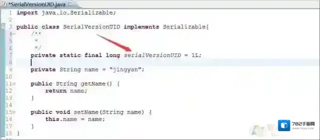 import java.io.Serializable;public class SerialVersionUID implements Serializable {private String name = “jingyan”;public String getName() {return name;}public void setName(String name) {this.name = name;}}