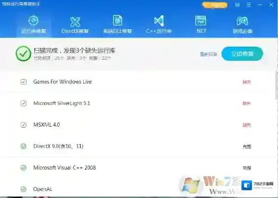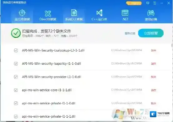 工具Windows 7 64位操作系统快快运行库修复助手(下载地址:快快运行库修复助手)操作流程1.下载并安装快快运行库修复助手之后,点击运行库修复功能的一键扫描2.扫描完成后点击理解修复即可,快快运行库可以自动判断用户电脑的版本信息并进行修复
