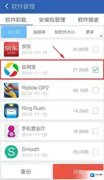 1、找到应用宝的应用图标(不是快捷方式),长按