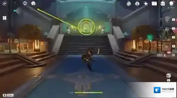 (4)进入副本后,追踪任务来到下图位置,靠近楼梯上面机器人后,跟着机器人走就行,机器人走的比较慢