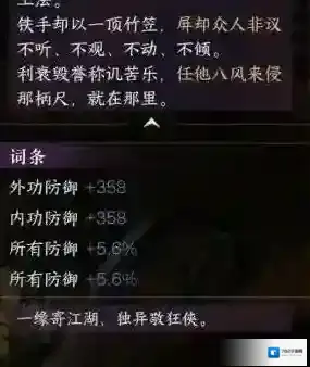 2、词条:外功防御和内功防御加358、所有防御加5.6%。