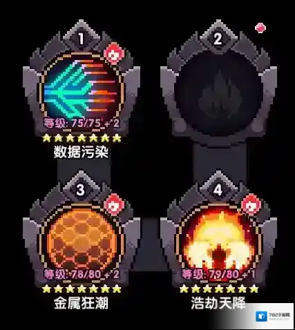 钢铁洪流I:驾驶机甲时每秒回复等同于金属狂潮伤害减免值的生命;装备浩劫天降后,多管机炮每次攻击将发射10发子弹,打桩机的伤害提升至3200%,且对有气力属性首领,每4次打桩击中,会造清空其气力。