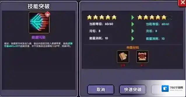 技能达到60级后可通过技能材料突破 强化提升等级,同时原有的星界外装,魔神石也可以进行提升等级,但技能效果最多不超过80级。