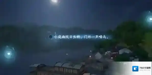 3、接着镜头转到码头,可以看见岸边房子,我们选择中间光点以小院做意象写出第二句(小院深沈香未老,门外啼鹃声杳。)。
