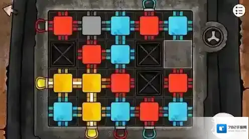 这里需要玩家把对应颜色的通道连接起来,就是红的全连起来连通两个红色灯泡这样子。这个谜题依然是随机生成的。。。。所以还是只发一下自己这里的过关方法。需要注意的点就是:上下左右可以拖动同一行/列的方块调整顺序,所以做好预判,想到应该放在什么地方再拖动才是过关的最佳方法。