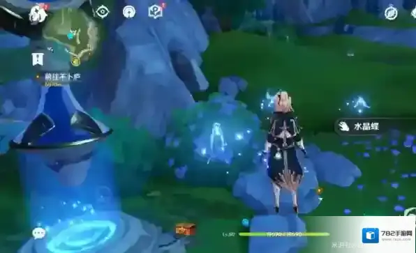 这个传送点过去左转就能看到一个海底洞穴(如果之前没完成解密,需要一分钟做任务才能进洞),里面有六个晶蝶。