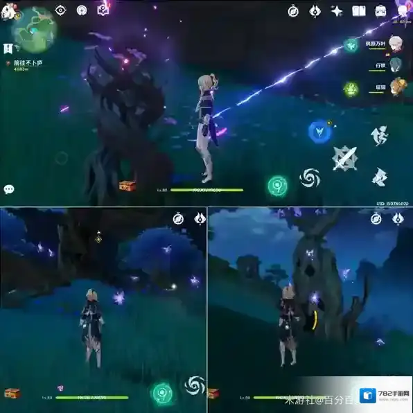 传送后拿旁边一个雷种子,一直向 飞即可看到一棵枯死的树,周围有大概五只。