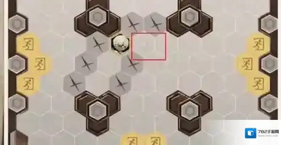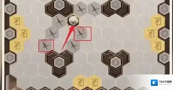 6、往右上方移动两格,按照图中顺序依次点击对应格子。