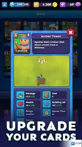 3、通过升级来强化你的单位。赢得战斗时解锁宝箱,其中包含有价值的卡牌,可增强您的部队并提高您的战术优势。