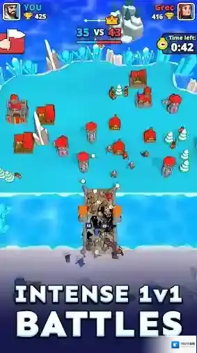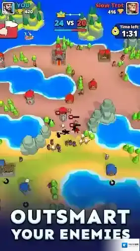 小小冲突(Tiny Clash!),由知名厂商Voodoo所推出的一款休闲塔防类手游。玩家将会踏入一个充满了战斗的惊险世界当中,与来自世界各地的玩家们展开激烈无比的1v1对战,在自己的领地上建造和部署各种独特的建筑,派遣各种强大的单位去进攻对手的领地,消灭所有敌人并占领对手的区域,取得最终的胜利!不断的去收集更多的资源,解锁更多的建筑和士兵,战胜更多强大的对手!