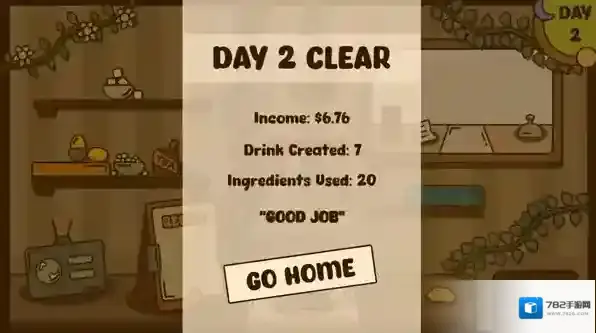 4、当完成所有的订单后就会结束一天,此时玩家可以消耗金币来解锁更多的配料去制作饮品。