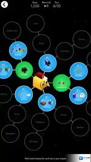 6、点击下方的tech tree可以打开科技树,能消耗星星来解锁不同的科技。