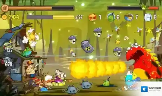 沼泽激战(Swamp Attack),充满了美式夸张风格的一款2D横版射击塔防游戏。游戏中的主人公生活在一片森林中,在他的小木屋周围有一片沼泽,沼泽中有着许多动物,随时都准备来围攻小木屋,玩家需要扮演主人公,拿起手中的枪械来保护小木屋,守住自己的领地!游戏诙谐幽默的风格正是吸引人的特色之一,例如主角虽然深陷包围,却也是从容的坐在小板凳上悠闲打靶,而且手持各种武器还会出现不同的呆萌表情,非常的有趣。游戏内有着丰富的关卡可以去挑战,并随着挑战还能用金币去升级武器提升战力,迎接更多的挑战!