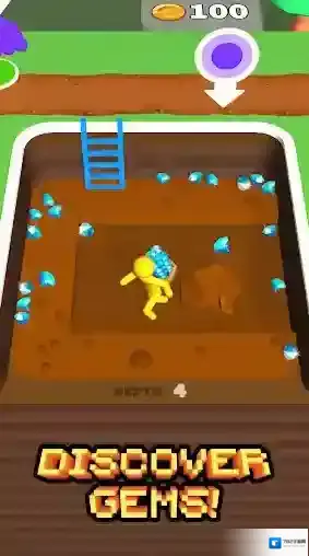 看谁挖的深,以挖掘地洞为主题的动作经营类手游。在游戏中,玩家将会扮演一名掘地者,不断的去挖掘地面来提升自己的等级,同时还可以收集地洞中的各种矿石,以此来换取金币,有了金币之后即可招募员工提高挖掘效率,如此往复的不断开采更多地洞,赚取源源不断的财富!游戏中提供了数十个不同价值的矿源,将会随着挖掘的深入慢慢的解锁,为你带来更多的收益!