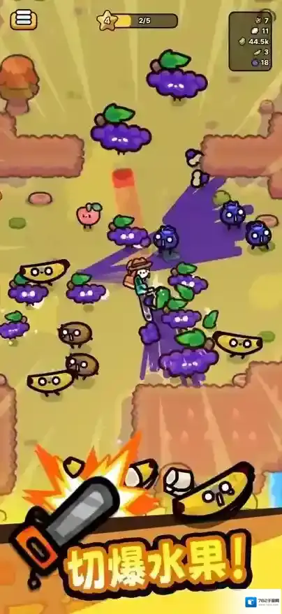 ● 汁水四溅特效:电锯切割与水果爆破的超炫视听体验!尽管角色使用电锯收割,但萌系画风适合全年龄玩家。缤纷色彩与可爱角色会让你忽略经营的压力。
