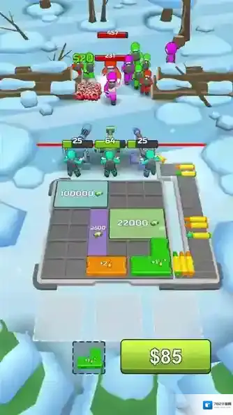 A:通过击败敌人获取金币,购买武器箱并进行合并,可合成更高阶子弹。同时升级军火库能永久增强基础火力与射速。