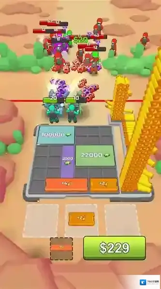 子弹狂热(Bullet Fever)是一款以合成玩法为核心的休闲益智类游戏,整体游戏玩法非常简单,在购买弹药箱之后,将弹药箱放在格子中,它会根据弹药箱的属性自动产出子弹,并通过传送带将子弹输送到前线,弹药箱等级越高产出的子弹越多、越好。