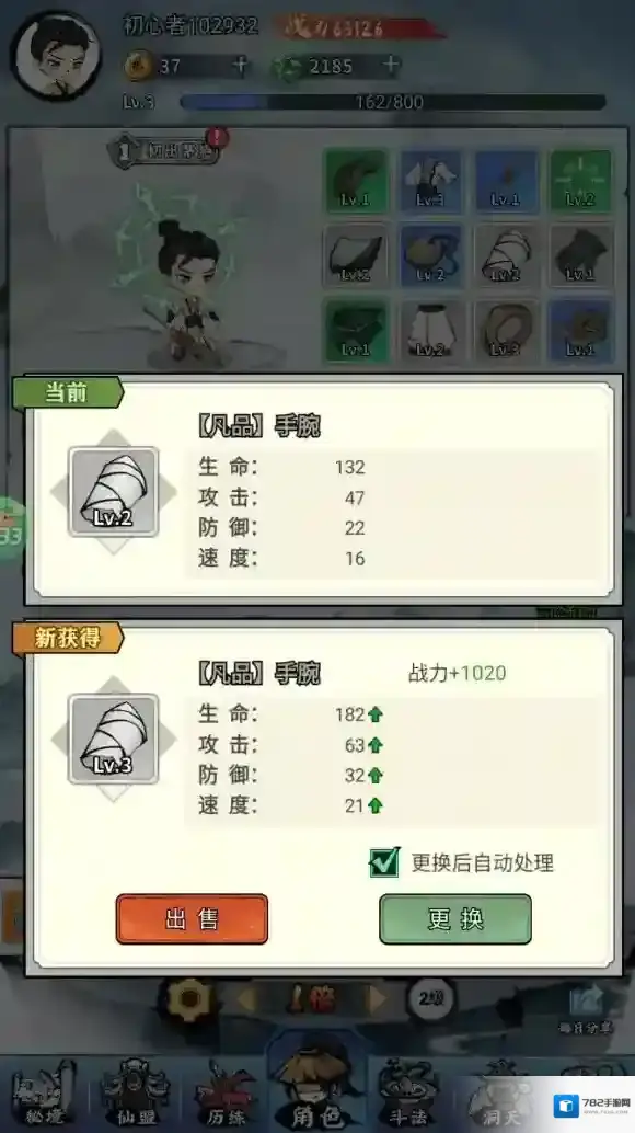 2、打造出来的装备好的直接换上,不好的直接出售。