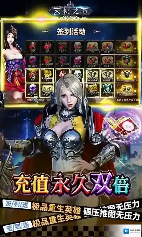 3、充值永久双倍,连续登陆签到再送顶级重生英雄,碾压推图无压力