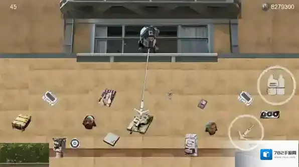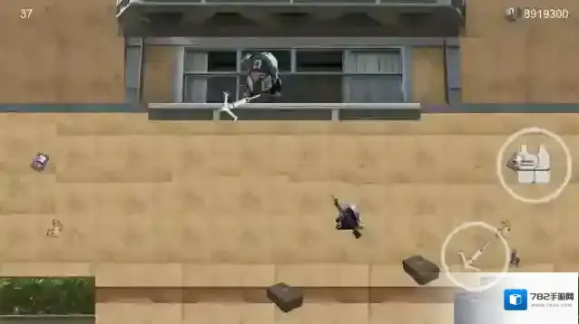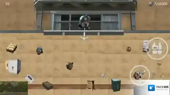 3、正式开始后滑动屏幕可以控制角色移动,点击右侧的钩爪按钮可以可以发射钩爪抓取物资。