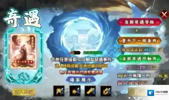 触发机制:击败任意怪物均有概率激活奇遇事件