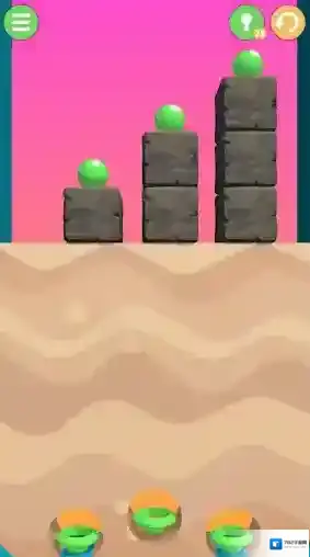 1、开始游戏后,通过拖动屏幕来挖掘通道,控制小球落到指定的位置。